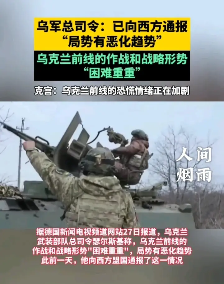 乌军总司令瑟尔斯基将军最新发声,报告了前线的最新战况。言辞间透着一股沉重而坚定的气氛,彷佛置身于硝烟弥漫的战壕之中。瑟尔斯基将军直言乌克兰在战场上面临着"困难重重",形势还在不断恶化。一个具体案例或许能给我们更直观的感受。在某个不知名的小镇里,一位年轻士兵欧巴桑告别母亲时留下了动人的话语:"妈妈,我不知何时才能再见到您,但请相信我们一定会竭尽全力捍卫家园。"面对家人的依恋,又要奔赴生死边缘的战场,这样的矛盾撕扯让人感同身受。