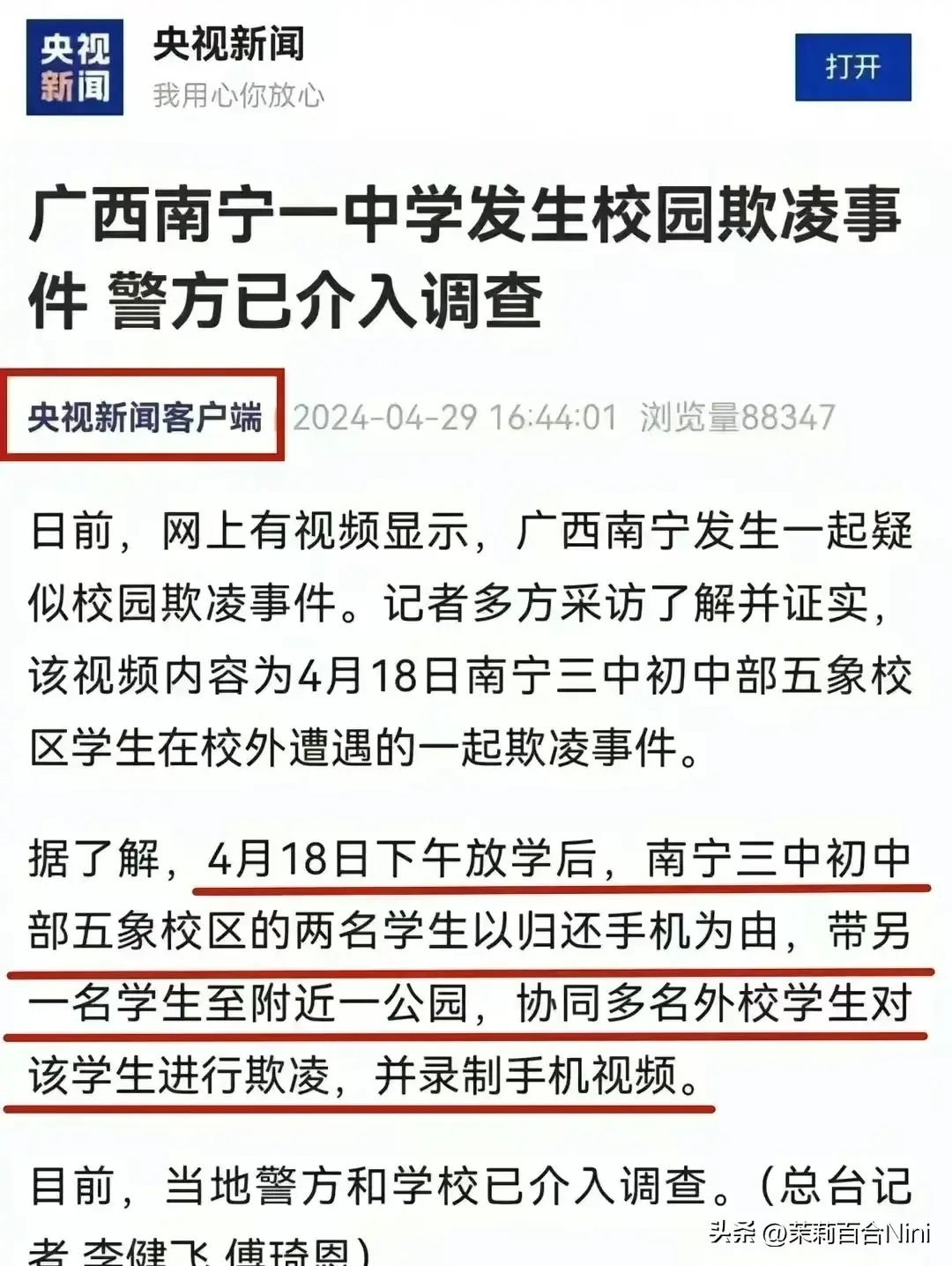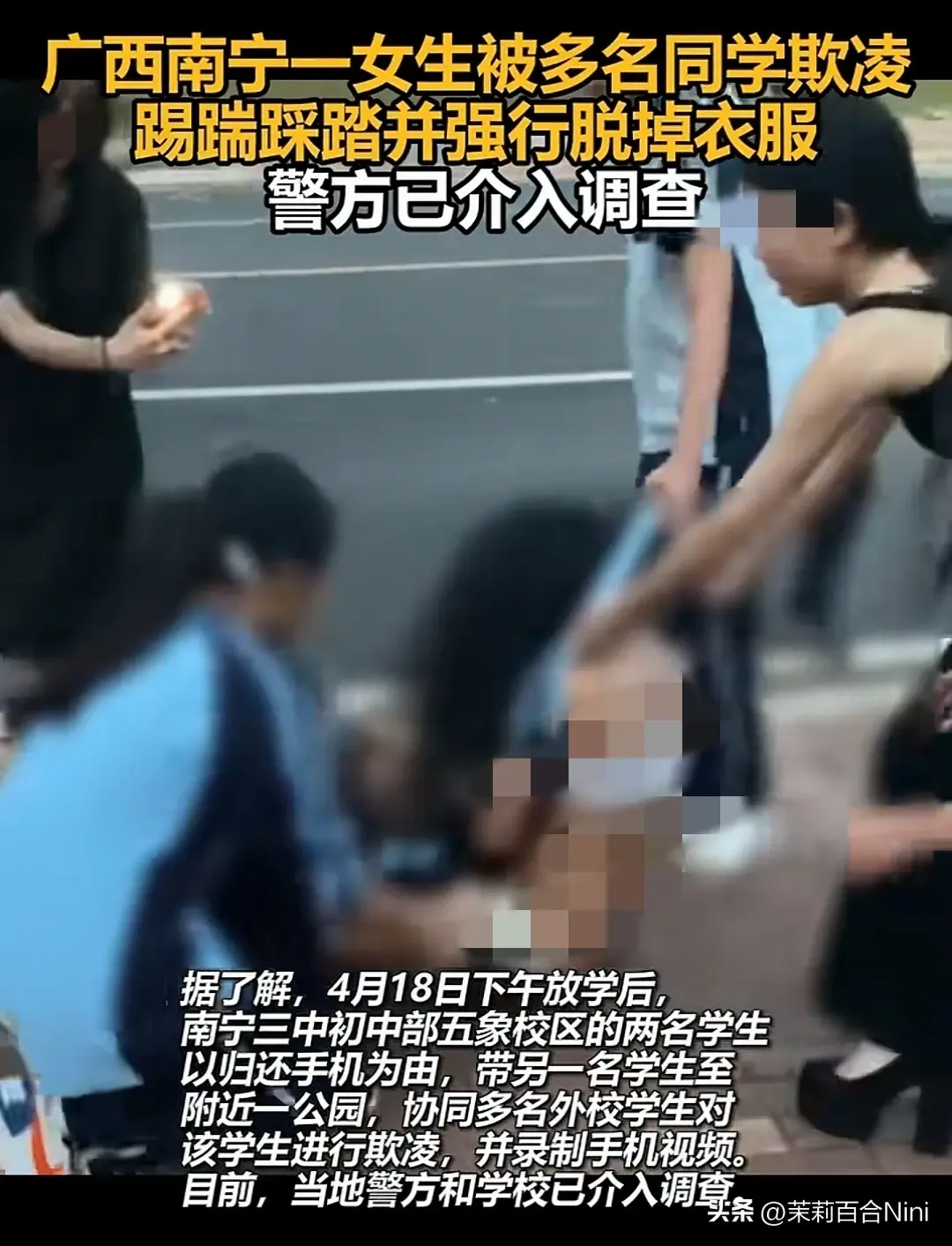 近日,广西南宁一初三女生被多名同学踢踹踩踏并强行脱掉衣服侮辱欺凌一事在网上闹得沸沸扬扬。