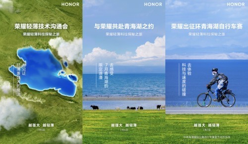 本次官宣的三组海报分别预告了荣耀轻薄科技探秘之旅即将举办的三场活动:一场见证轻薄兼强大魔法的荣耀轻薄技术沟通会、一趟感受7月限定浪漫的青海湖旅程、一次体验科技与速度碰撞的环青海湖自行车赛。据悉,荣耀自研的青海湖电池技术正是源于中国最大的湖泊青海湖,是荣耀Magic V2系列重构手机电池,打破技术边界,实现荣耀Magic V2系列9.9 mm轻薄的关键技术。这也预示着荣耀Magic V3系列将在电池技术上有全新突破,带来更进一步的续航效果以及轻薄体验。