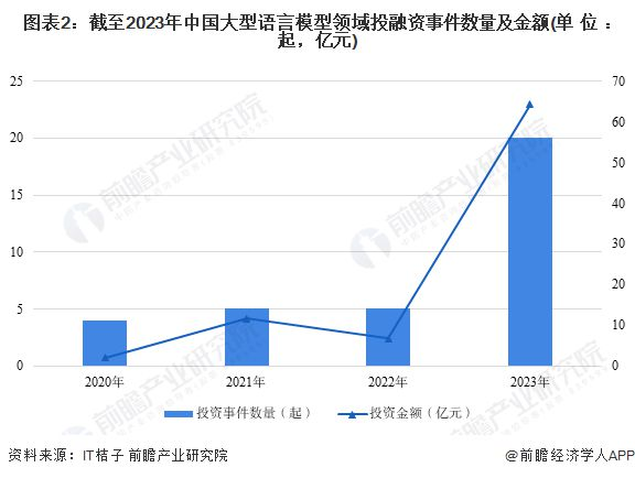 近年来,国内大语言模型的投融资事件数量快速增长,2020年至2022年,各年投融资事件数量未超过5起,而2023年共有20起。从已知金额来看,2023年,国内大模型领域投融资金额已高达64.27亿元。
