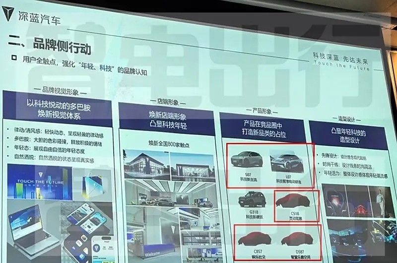 近日,长安深蓝汽车内部流出的PPT快照显示,该品牌计划在未来发布五款车型。其中包括已知的L07和S07两款车型,以及三个代号分别为C518、C857和D587的新车。这些新车被标注为“C518灵动驾驶乐趣”、“C857社交娱乐新宠”及“D587智慧乐享空间”。