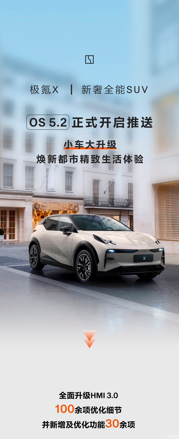 )已开启OS 5.2版本OTA推送。本次升级主要针对座舱交互和用车体验方面进行改进。同时,在音响效果方面也有所提升。此外,还有多项优化措施:导航抑制媒体音开关、语音车控卡片、蜂窝网络一键重连等新功能加入;同时改善了雷石KTV、极氪App充电信息显示以及预约充电和预约出行等方面。