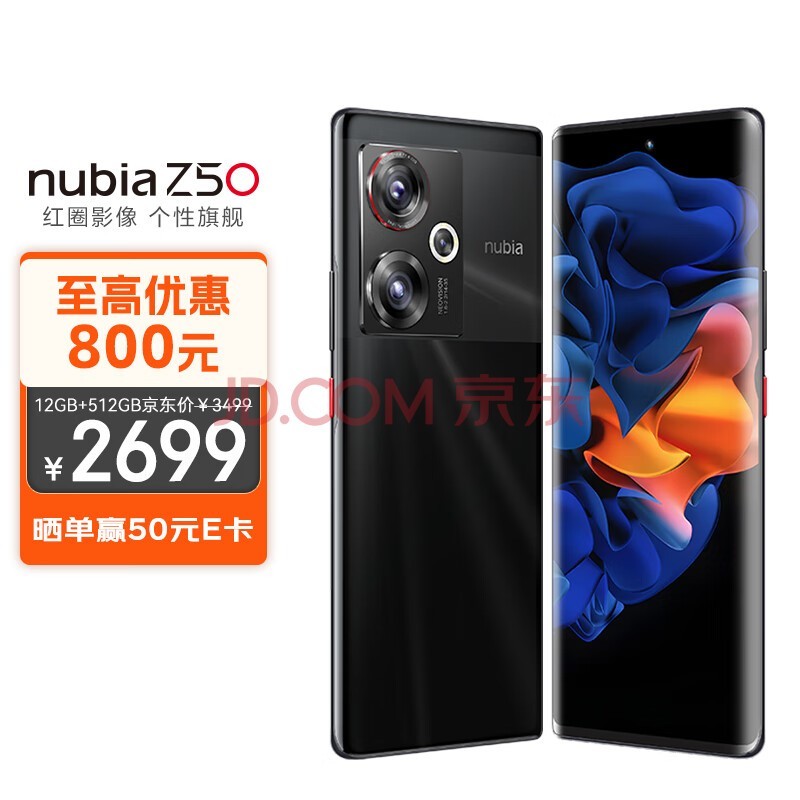 nubia 努比亚Z50 12GB+512GB 黑礁 第二代骁龙8 144HZ高刷 新35mm定制光学系统5000mAh电池80W快充拍照5G手机