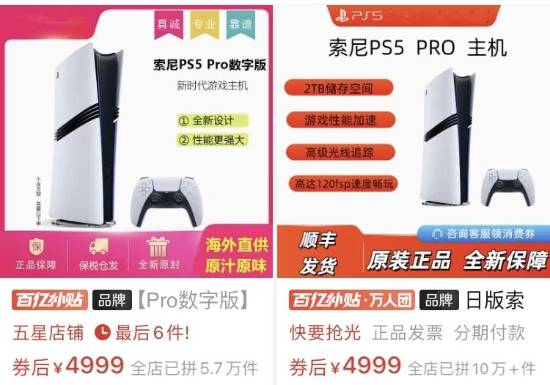 据报道,日版PS5 Pro在国内某电商平台已经基本稳定在4999元的价格,甚至比官方售价还要便宜一些。用户无需长时间等待抢购,就可以轻松购买到。尽管PS5 Pro已经供应充足,但配套的光驱仍然紧缺。