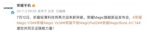 从折叠屏持续12个月的轻薄领先,到端侧AI技术的探索创新,荣耀的产品与技术为行业和消费者带来惊喜。荣耀Magic旗舰新品将有哪些轻薄黑科技与AI新体验,7月12日的发布会将为我们揭晓答案。