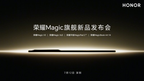 今日,荣耀宣布荣耀Magic旗舰新品发布会将于7月12日在深圳正式召开。届时荣耀Magic V3、荣耀Magic Vs3、荣耀平板MagicPad 2、荣耀MagicBook Art 14将与广大消费者见面。海报中,疑似折叠屏展开态的机身剪影非常轻薄,宛如一道细长的天际线,结合官宣信息“折叠轻薄科技将再次迎来新突破”及此前消息,荣耀Magic V3系列将在轻薄方面带来新突破。