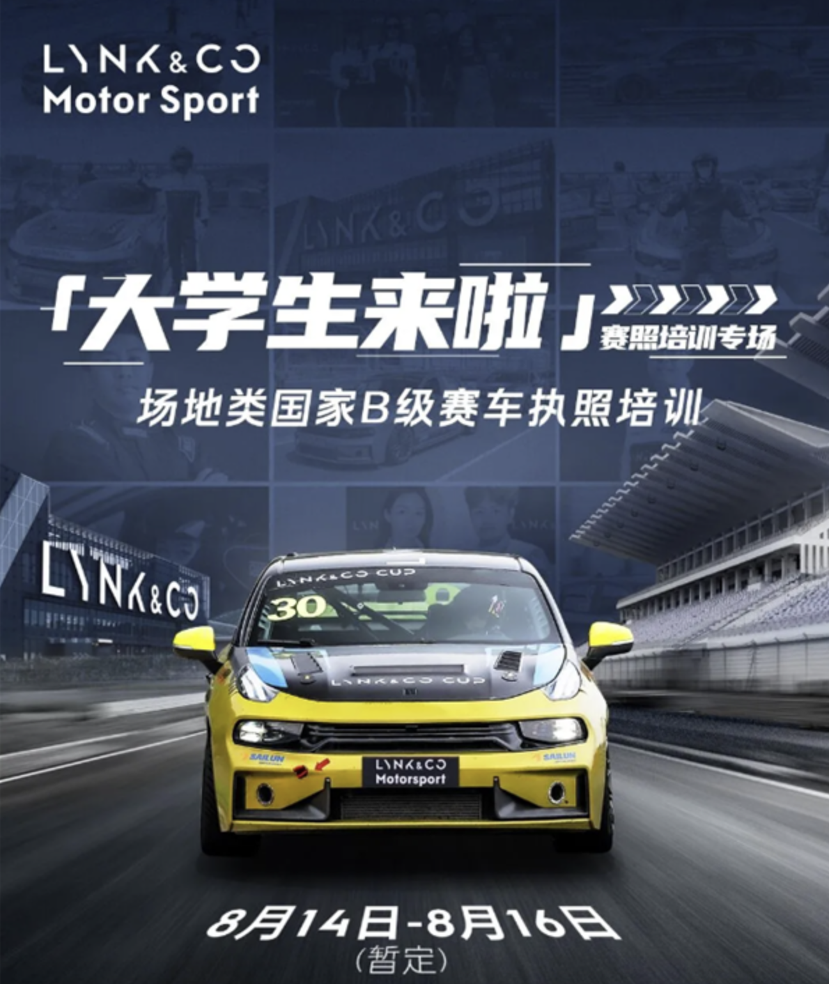 领克汽车近期宣布将于8月14日至8月16日举办“大学生来啦”赛照培训专场,该活动专为全日制在校大学生、教职工和毕业两年内的学生设计。参与者将有机会花费6666元参与宁波国际赛道的培训活动,其中包括住宿费、培训费、教材费等各项费用。