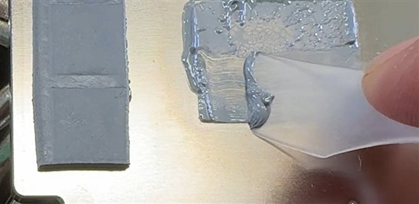 在显卡刚上手的时候,只需薄薄的一层硅脂,效果就非常好。有时候甚至好得不可思议,核心温度可以压在60℃,堪比顶级硅脂Thermal Grizzly Kryonaut等的性能水平。