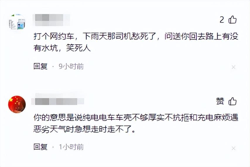 此外,也有网友呼吁电动车保险应该设置特殊的"自然灾害损失"条款,使车主在遭遇此类意外时有相应的保障。