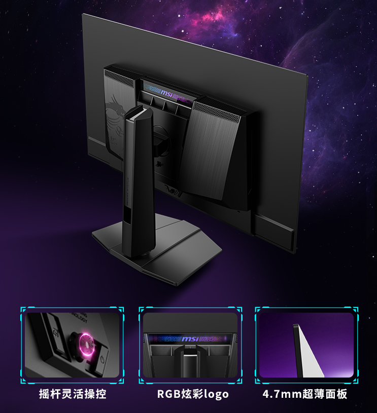 不仅如此,该显示器还拥有高达240Hz的刷新率和GTG(GraytoGray)0.03毫秒的超快响应时间,彻底告别画面拖影,让每一帧都清晰可辨,无论是竞技游戏还是高速视频编辑,都能游刃有余。色彩方面,MPG色域覆盖了99%DCI-P3和AdobeRGB98%,sRGB高达138%,精准还原色彩,满足专业级设计与视频制作需求。同时,智能监测、智能准星、视觉增强等功能的加入,让使用体验再升级。人体工学支架设计,灵活调节,舒适使用;更有微星专属3年烧屏保护,让用户无忧享受科技带来的乐趣。